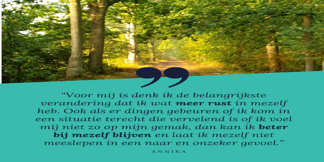 Ze staat naast je en helpt je echt naar dat doel wat jij wilt bereiken (en dit zo te kunnen houden). Ik weet nu hoe ik de ruimte voor mezelf kan blijven nemen, zonder me schuldig te voelen. Ik voel me zelfverzekerder nu ik meer rust heb in mijn hoofd. En zelfs hoe ik meer op mijn eigen lijf kan vertrouwen. Echt een mega verschil!